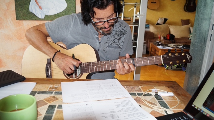 Am 04.05.2017 traf ich mich mit Ron bei sich zu Hause und wir testeten unser neues Recording Equipement für die Tutorial Videos … alle Geräte nur auf Akku/Batterie-Basis, um künftig auch autark in der Landschaft aufnehmen zu können … es war nicht ganz einfach, von Null auf Hundert ein brauchbares Ergebnis zu erzielen, sind doch so viele Komponenten zu berücksichtigen, wie z.B. stimmen die Kamera Einstellungen?, Ist die Audioaufnahme brauchbar? Wie ist das Verhältnis von Gitarre zu Gesang? usw … das Einzige, was keine Sorge machte ist die Performance vom Ron … möglicherweise lag es an dem göttlichen Beistand … jaja, der Olymp unter sich 🙂 🙂 🙂 …
